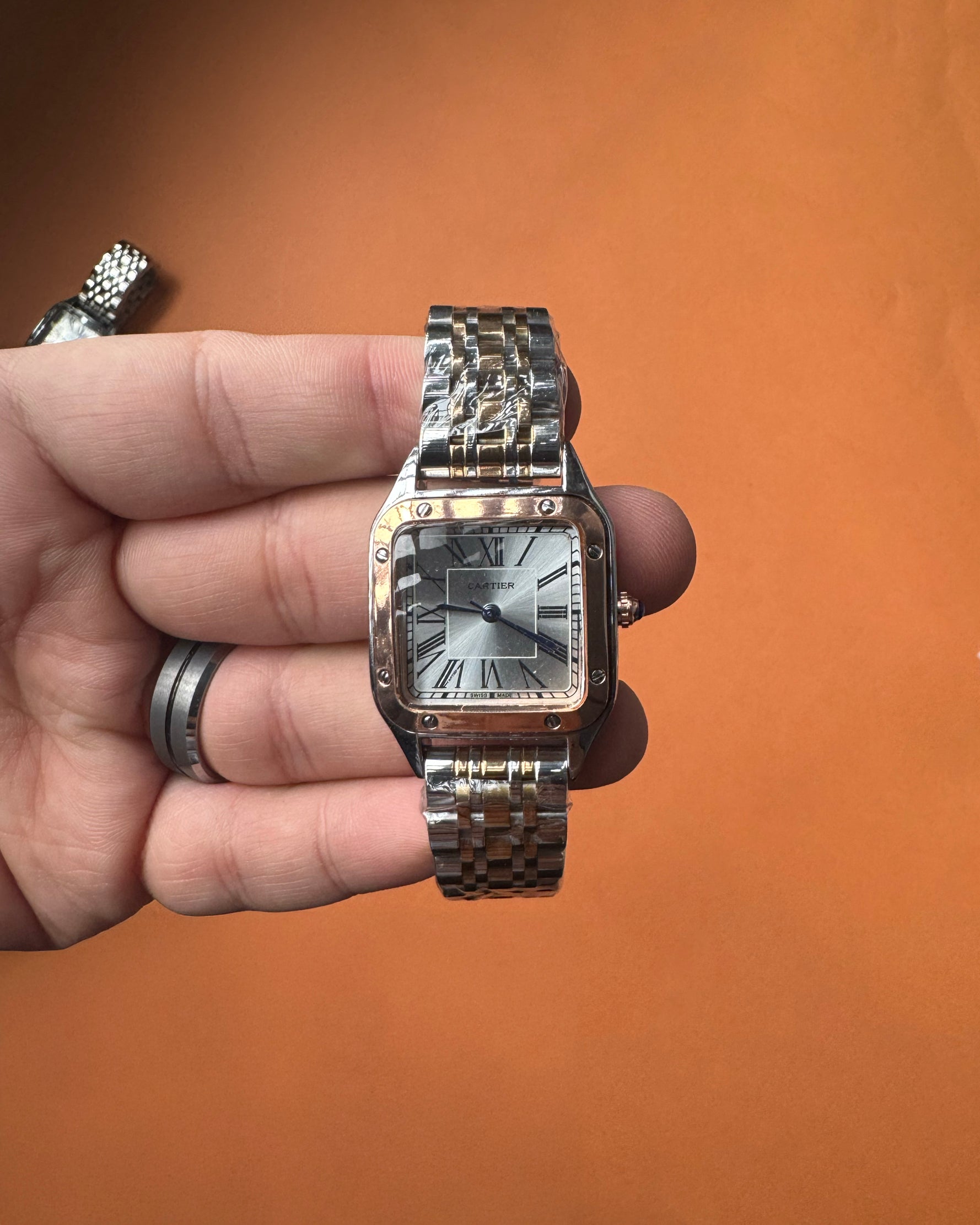 ساعة كارتيربتصميم أنيق يجمع بين البساطة والرقي مصنوعة من ستانلس ستيل مقاوم للصدأ وتغيير اللون بجودة عالية تحافظ على لمعانها مع الوقت. تتحمل المطر والتعرض للمياه لكنها غير مخصصة للغوص أو الاستحمام. تأتي داخلبوكس وشنطة — مثالية كهدية أو لإطلالة مميزة. تشملضمان سنة كاملة على الماكينة لراحة بالك وثقتك في الجودة.