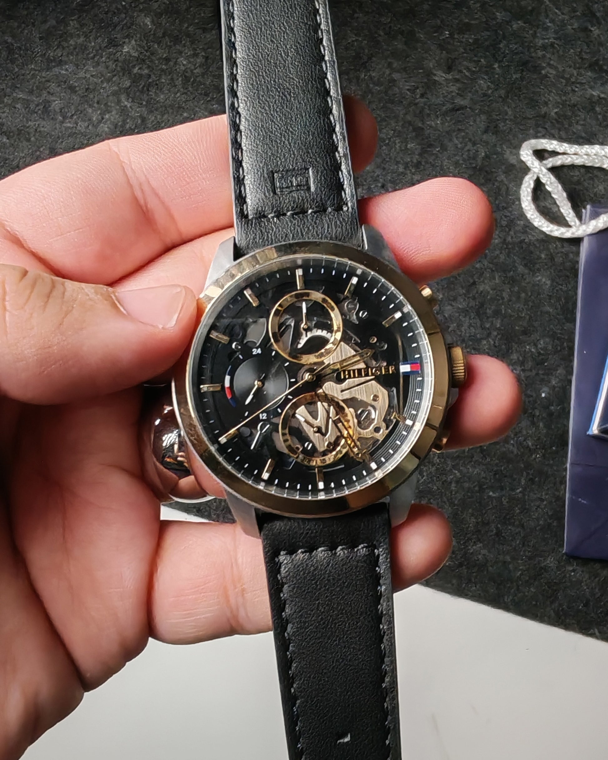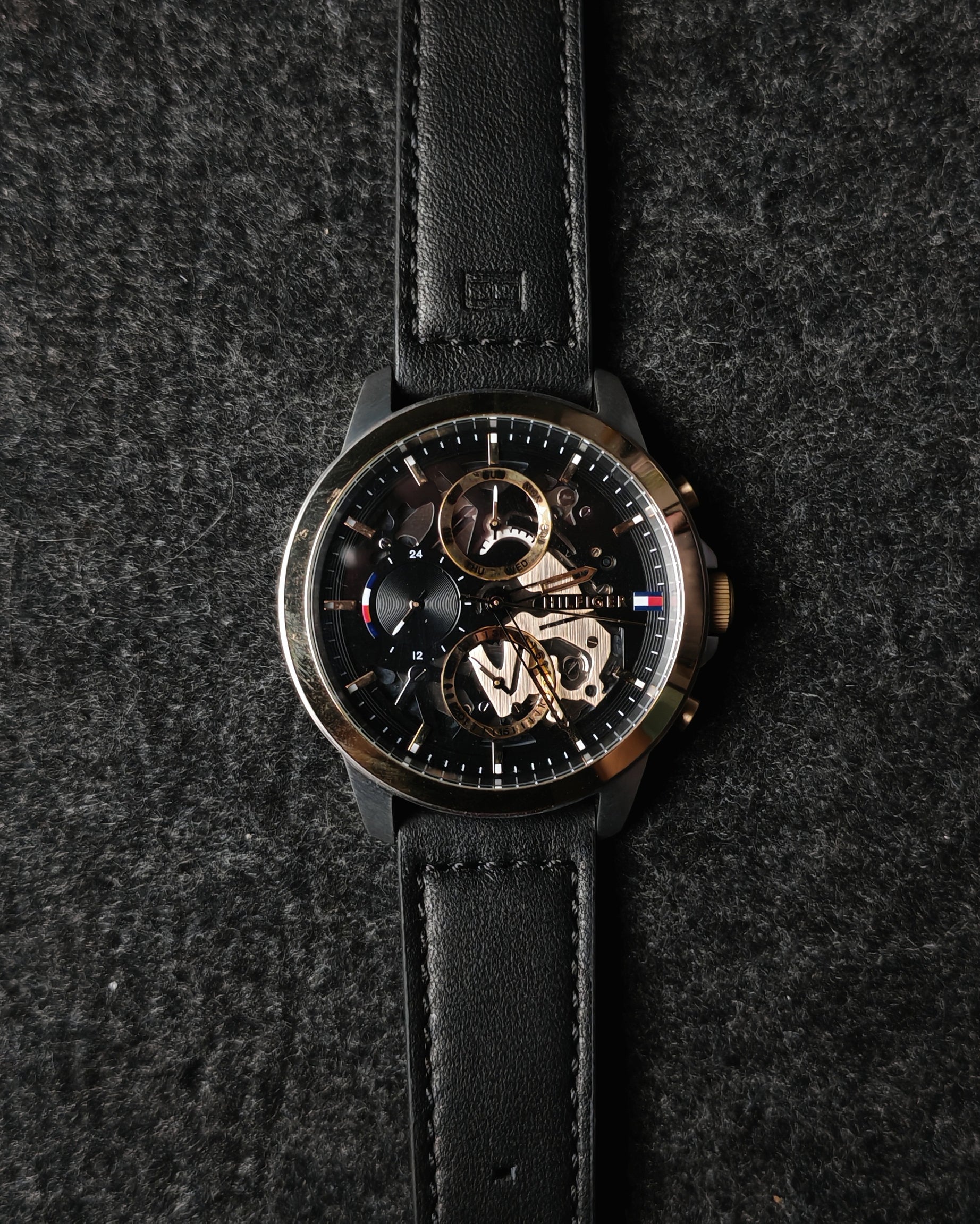 Elegant Tommy Hilfiger timepiece featuring a premium leather strap crafted for comfort and timeless appeal.