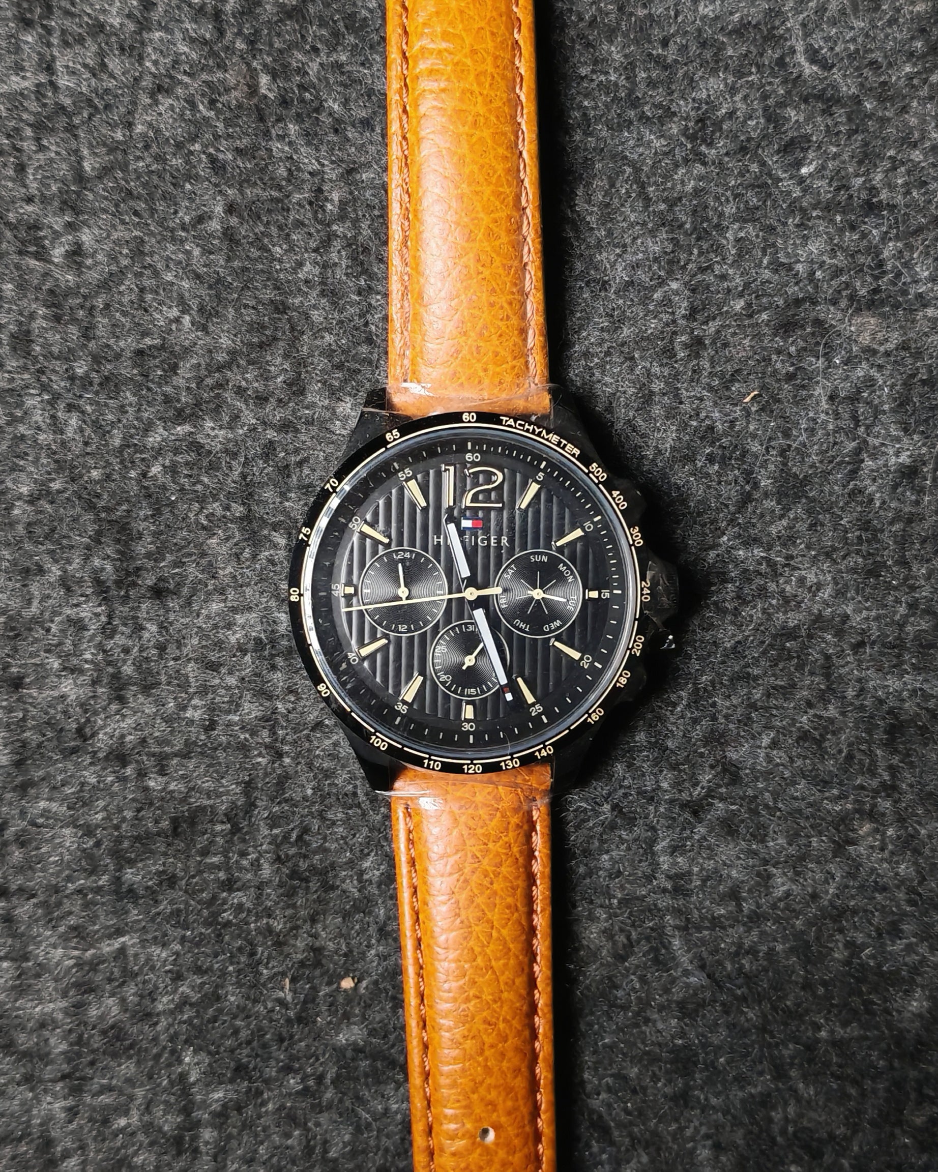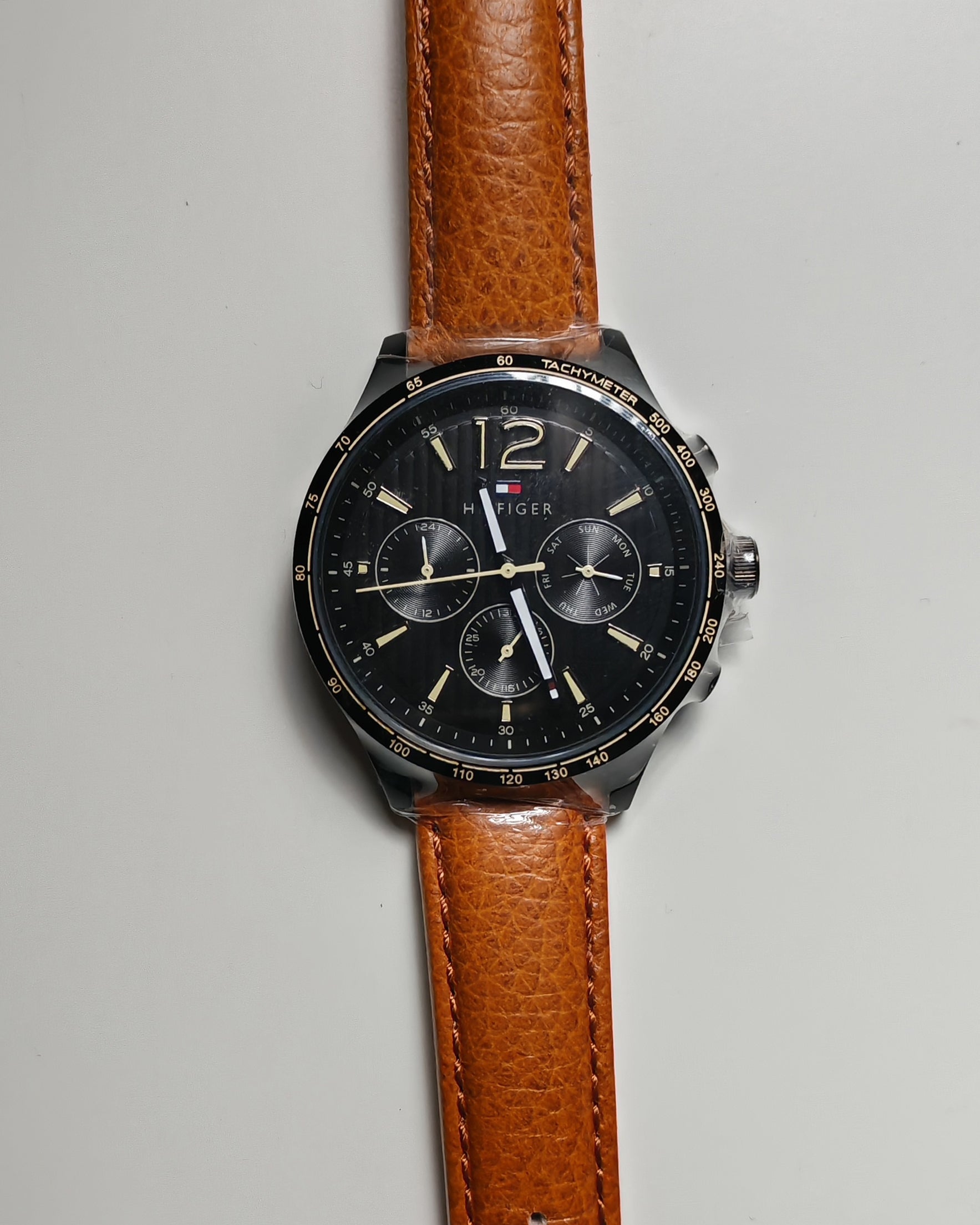 Elegant Tommy Hilfiger timepiece featuring a premium leather strap crafted for comfort and timeless appeal. The multi-function chronograph dial offers precise timekeeping with stylish sub-dials, all housed in a durable stainless steel case. Water-resistant design ensures reliable performance for everyday wear, combining style and functionality.